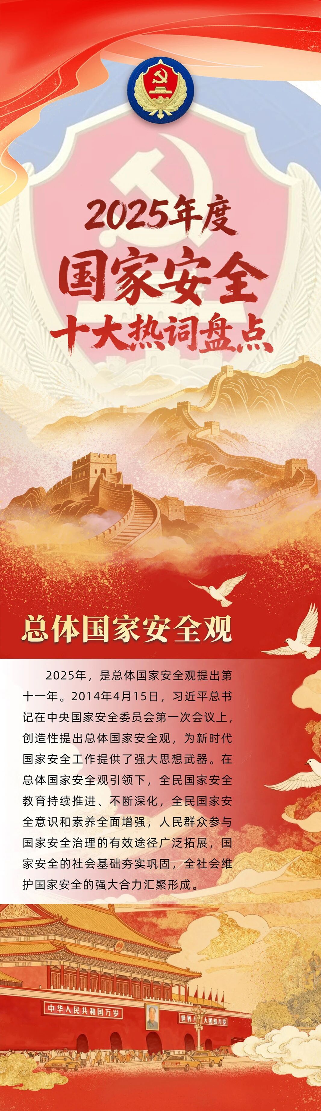 转眼间,我们已至2025年岁末。2025年是我国“十四五”规划收官之年,以习近平同志为核心的党中央团结带领全党全国各族人民迎难而上、砥砺奋进,经济社会发展主要目标任务胜利完成,中国式现代化迈出新的坚实步伐。近日,国家安全部官方微信公众号根据公开数据综合分析,盘点梳理2025年度国家安全十大热词,欢迎广大朋友点赞收藏。